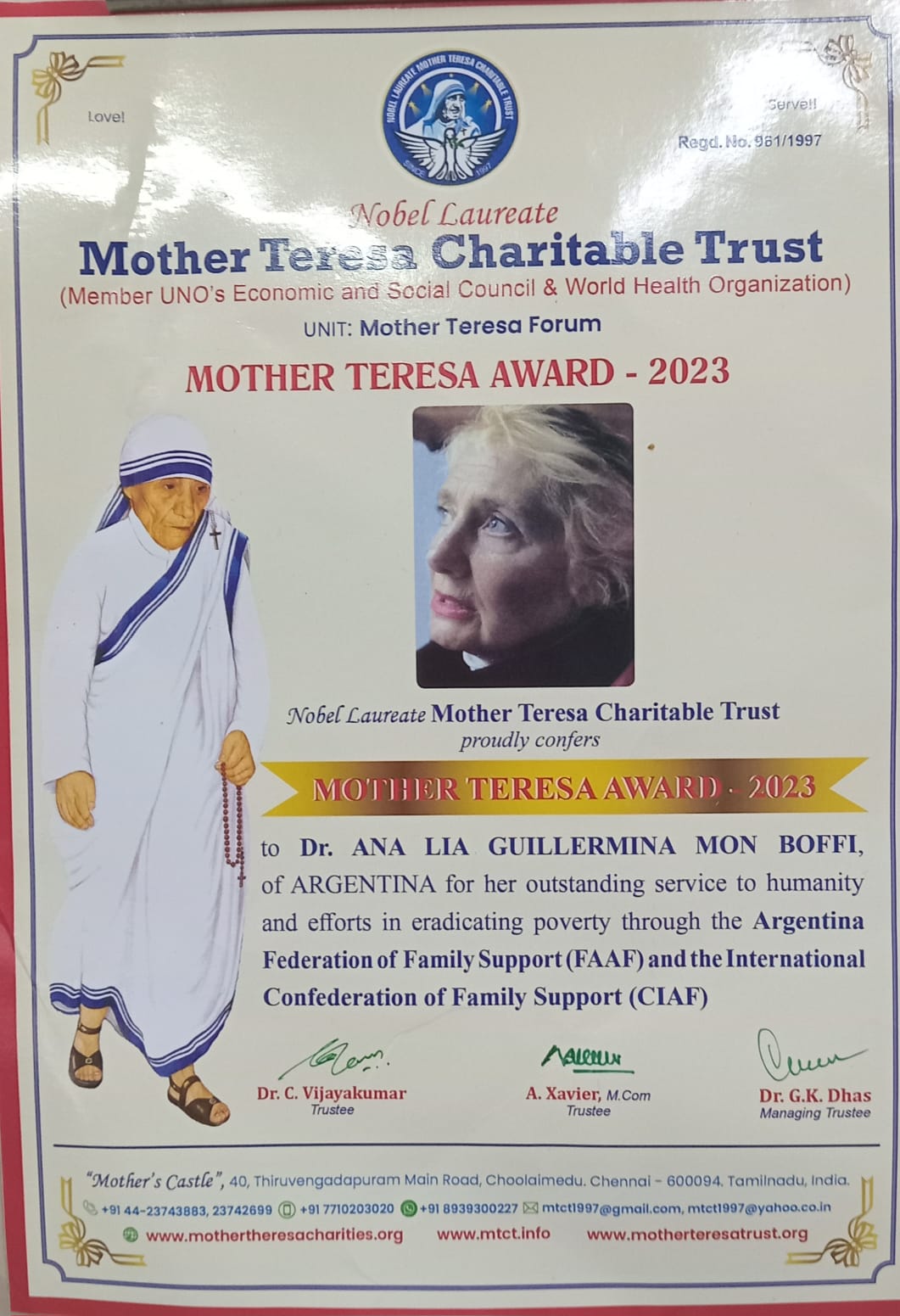 Reciba un cordial saludo del equipo de los Premios Internacionales Madre Teresa.